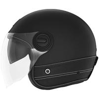 Kask motocyklowy NOX PREMIUM Heritage otwarty, czarny matowy z brązową skórą
