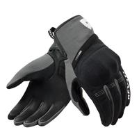 Rękawice motocyklowe wykonane z połączenia skóry i poliestru.